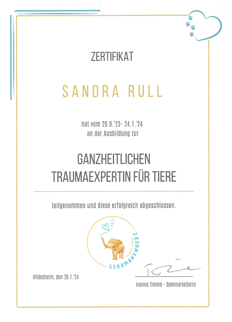 • 6-monatige Ausbildung zur Ganzheitlichen Trauma-Expertin für Tiere