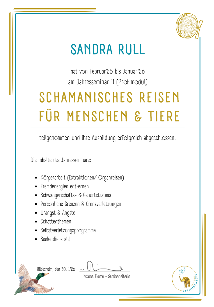 bei Ivonne Timme (Schamanenherz) 2023 - Ausbildung zur Ganzheitlichen Trauma-Expertin für Tiere
